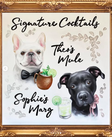 Think hand-painted venue portraits your guests sign instead of a guestbook. Or a cocktail menu illustrated with your pet. Or custom thank you notes that feel nothing like a template. These are the details people remember.
